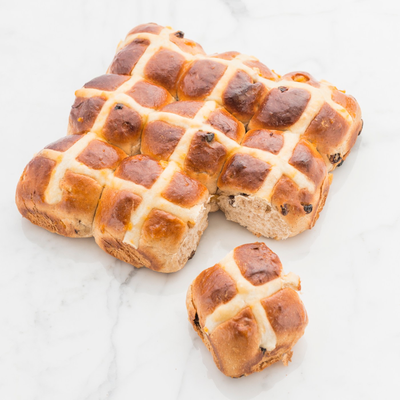 condividendo un hot cross bun; che altro non è che un panino dolce, preparato il Venerdì Santo nei paesi anglosassoni.Ecco spiegato anche il disegno a croce, associato alla crocifissione.