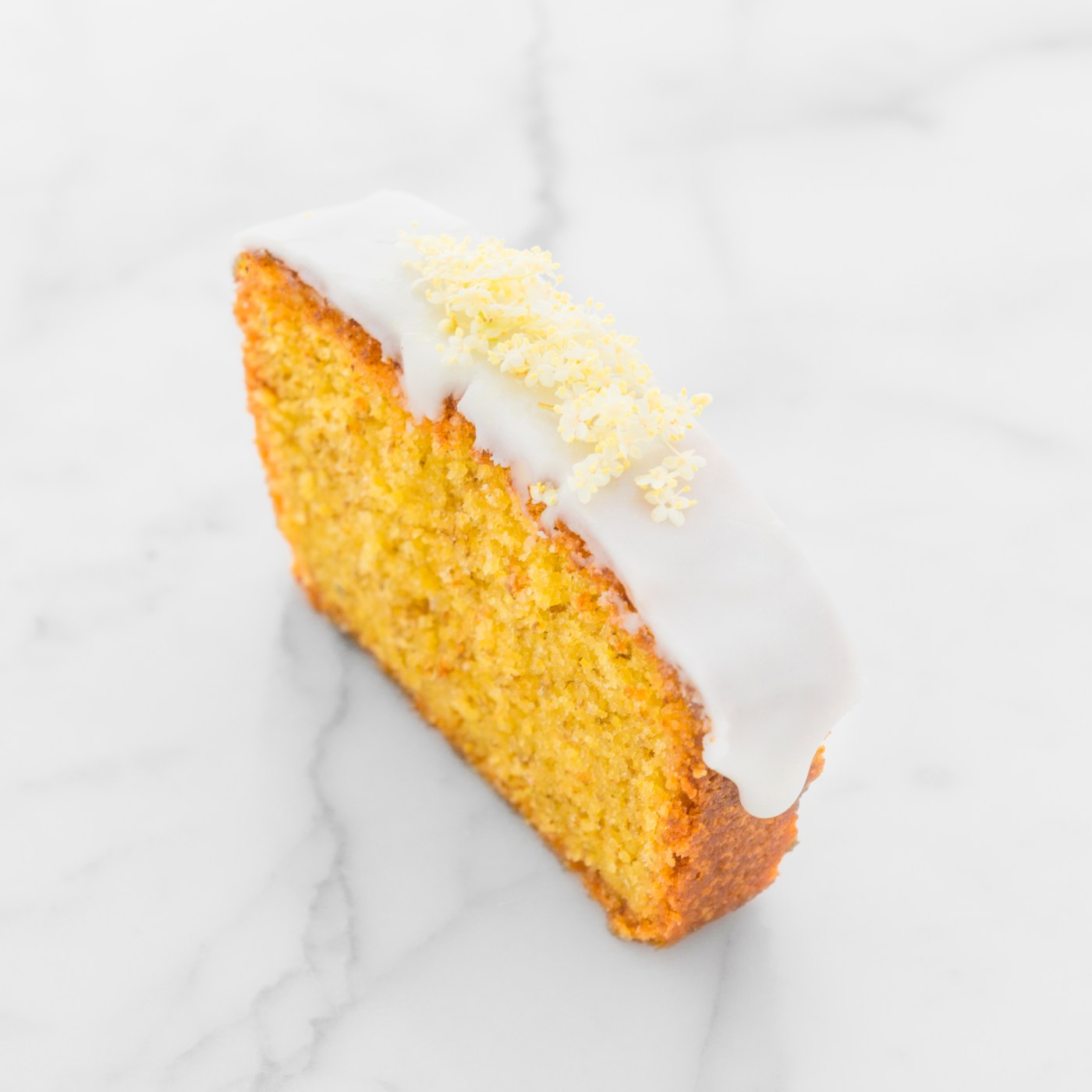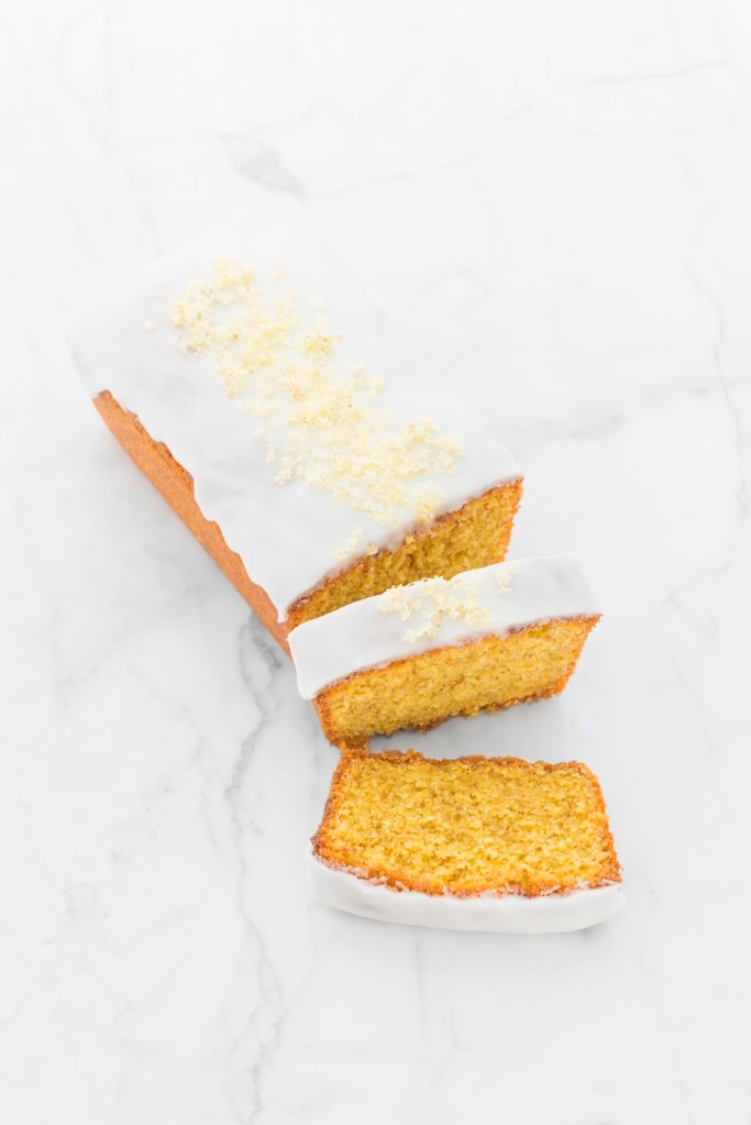 Attrezzatura Stampo plumcake 10 x 20 cm 3 uova (nel mio caso 180 g) 180 g zucchero semolato 180 g burro morbido 1,8 g fior di sale 8 g lievito chimico 90 g farina 00 90 g farina di mais 40 g fiori di sambuco Decorazione 125 g zucchero a velo 20 g succo di limone Fiori di sambuco freschi