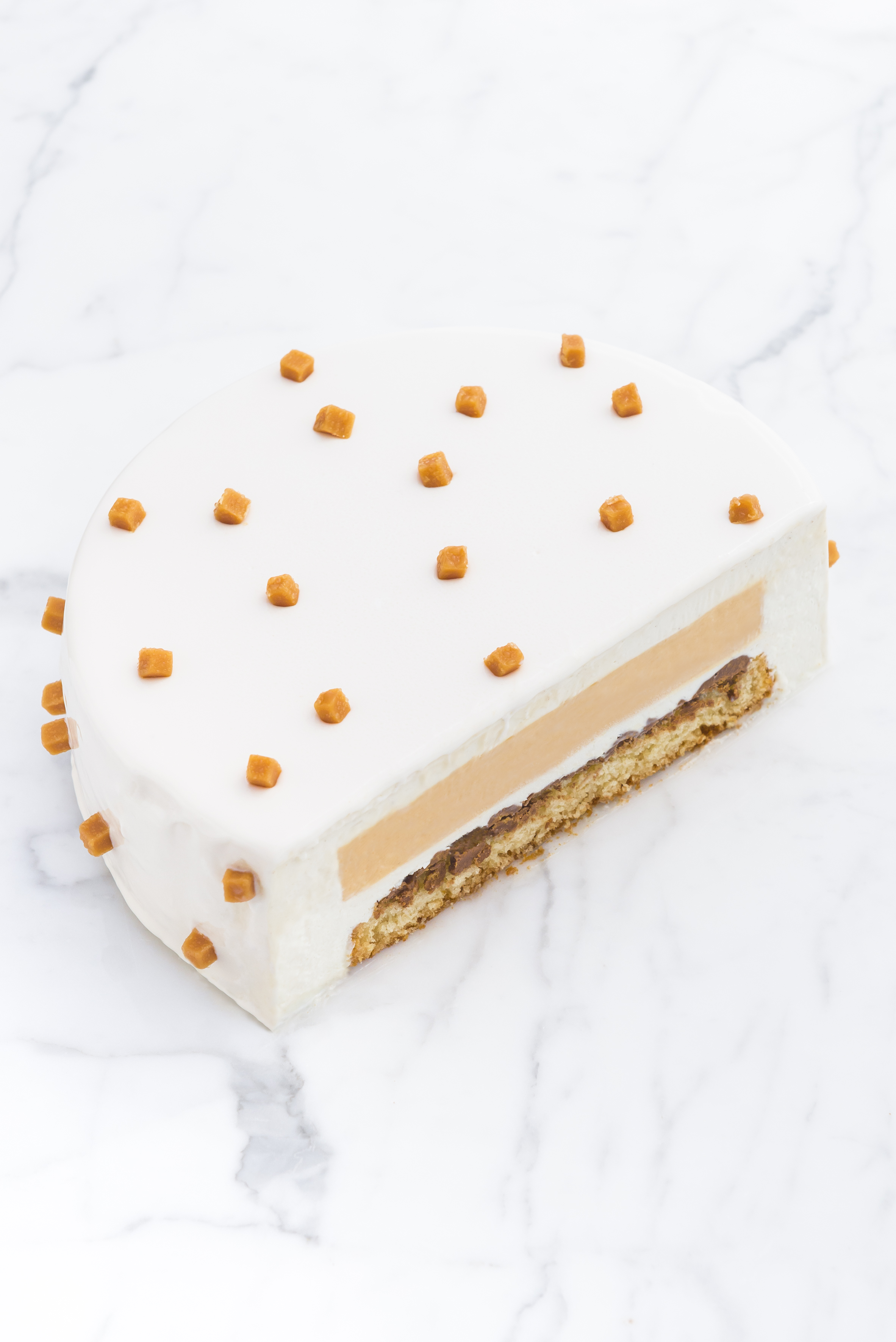 Ogni suo dolce nasce da un attento progetto fatto di misure al millimetro e pesi al milligrammo, il bilancino di precisione in cucina è il suo migliore alleato. I suoi dolci, spesso architettonici, si contraddistinguono per il loro aspetto essenziale e moderno che non deve mai ingannarci perché, al taglio, la sorpresa è sempre dietro l’angolo.