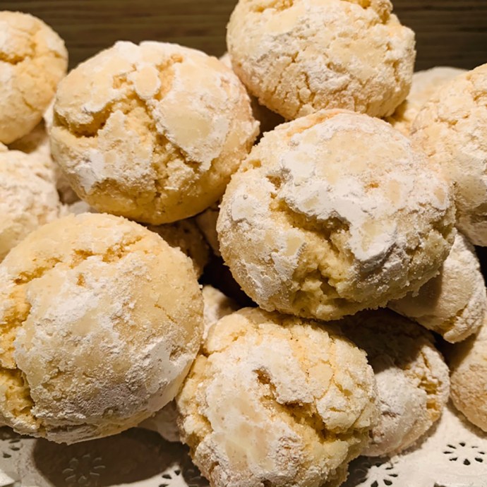 Croccantini fuori e morbidi dentro, profumati di vaniglia e rum, sono peggio delle ciliegie, uno tira l’altro.
